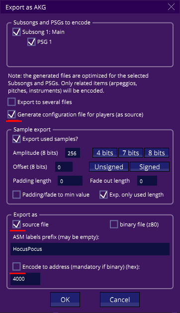 Alors pour commencer, il va vous falloir une musique Arkos et télécharger l'outil Arkos Tracker! Ensuite, une fois la musique chargée dans l'outil, exportez la en AKG