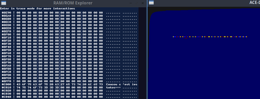 Je place ici les trois extras en fin de fonte, sur les codes 126,127 et 128. CODE_MORT equ 0 CODE_RETURN equ 1 CODE_BAS equ 2 CODE_DROITE equ 3 CODE_HAUT equ 4 CODE_GAUCHE equ 5 CODE_CLR equ 6 CODE_TAB equ 7 CODE_ESC equ 8 CODE_DEL equ 9 CODE_CTRL_BAS equ 10 CODE_CTRL_DROITE equ 11 CODE_CTRL_HAUT equ 12 CODE_CTRL_GAUCHE equ 13conversionASCII .ligne40 defb '.',CODE_RETURN,'369',CODE_BAS,CODE_DROITE,CODE_HAUT .ligne41 defb '021587',CODE_RETURN,CODE_GAUCHE .ligne42 defb CODE_MORT,'$',CODE_MORT,'4#',CODE_RETURN,'*',CODE_CLR .ligne43 defb ':=mùp^)-' .ligne44 defb ';,klioçà' .ligne45 defb ' njhyuè!' .ligne46 defb 'vbfgtr(]' .ligne47 defb 'xcdsze"\'' .ligne48 defb 'w',CODE_MORT,'q',CODE_TAB,'a',CODE_ESC,'é&' .ligne49 defb CODE_DEL,CODE_RETURN,CODE_RETURN,CODE_RETURN,CODE_DROITE,CODE_GAUCHE,CODE_BAS,CODE_HAUT .shift40 defb '.',CODE_RETURN,'369',CODE_BAS,CODE_DROITE,CODE_HAUT .shift41 defb '021587',CODE_RETURN,CODE_GAUCHE .shift42 defb CODE_MORT,128,CODE_MORT,'4>',CODE_RETURN,'<',CODE_CLR ; patch anti-slash .shift43 defb '/+M%P',126,'[_' ; patch pipe .shift44 defb '.?KLIO90' .shift45 defb ' NJHYU78' .shift46 defb 'VBFGTR56' .shift47 defb 'XCDSZE34' .shift48 defb 'W',CODE_MORT,'Q',CODE_TAB,'A',CODE_ESC,'21' .shift49 defb CODE_DEL,CODE_RETURN,CODE_RETURN,CODE_RETURN,CODE_DROITE,CODE_GAUCHE,CODE_BAS,CODE_HAUT .ctrl40 defb CODE_MORT,CODE_RETURN,CODE_MORT,CODE_MORT,CODE_MORT,CODE_CTRL_BAS,CODE_CTRL_DROITE,CODE_CTRL_HAUT .ctrl41 defb CODE_MORT,CODE_MORT,CODE_MORT,CODE_MORT,CODE_MORT,CODE_MORT,CODE_RETURN,CODE_CTRL_GAUCHE .ctrl42 defb CODE_MORT,127,CODE_MORT,CODE_MORT,CODE_MORT,CODE_RETURN,CODE_MORT,CODE_CLR ; patch Arobe .ctrl43 defb CODE_MORT,CODE_MORT,CODE_MORT,CODE_MORT,CODE_MORT,CODE_MORT,CODE_MORT,CODE_MORT .ctrl44 defb CODE_MORT,CODE_MORT,CODE_MORT,CODE_MORT,CODE_MORT,CODE_MORT,CODE_MORT,CODE_MORT .ctrl45 defb CODE_MORT,CODE_MORT,CODE_MORT,CODE_MORT,CODE_MORT,CODE_MORT,CODE_MORT,CODE_MORT .ctrl46 defb CODE_MORT,CODE_MORT,CODE_MORT,CODE_MORT,CODE_MORT,CODE_MORT,CODE_MORT,CODE_MORT .ctrl47 defb CODE_MORT,CODE_MORT,CODE_MORT,CODE_MORT,CODE_MORT,CODE_MORT,CODE_MORT,CODE_MORT .ctrl48 defb CODE_MORT,CODE_MORT,CODE_MORT,CODE_TAB,CODE_MORT,CODE_ESC,CODE_MORT,CODE_MORT .ctrl49 defb CODE_DEL,CODE_RETURN,CODE_RETURN,CODE_RETURN,CODE_DROITE,CODE_GAUCHE,CODE_BAS,CODE_HAUTOn aura défini 3 tables, selon qu'on appuie sur SHIFT et/ou CTRL en même temps qu'une autre touche. Ces tables servirontdans l'analyse des changements de touche à la fin de la gestion clavier. Mais d'abord, il faut déterminer quelles touches ont été actionnées... On va doubler le tableau résultat de scan des touchespour conserver l'état précédent et pouvoir le comparer avec l'état courant. Une simple copie de l'un vers l'autre avant de scanner. lectureMatriceClavier ld hl,matriceClavier+9 : ld de,matriceRemanence+9 : ld bc,9 : lddr : ld a,(hl) : ld (de),a ; copier la rémanence ld bc,#f782 out (c),c ld bc,#f40e ld e,b out (c),c ld bc,#f6c0 ld d,b out (c),c out (c),0 ld bc,#f792 out (c),c ld a,#40 ld c,d .loop ld b,d out (c),a ; sélectionner la ligne ld b,e ini ; lire et stocker dans notre tableau inc a inc c jr nz,.loop ld bc,#f782 out (c),c ret confine 21 ; s'assurer que les 20 octets suivants ne chevauchent pas une incrémentation de poids fort matriceClavier defs 10,#FF matriceRemanence defs 10,#FF ; état précédent des touches inversées compteurRepetition defb 0 sousRepetition defb 0 shiftCTRL defb 0À partir de nos deux tableaux, on va analyer : - les changements - les états enfoncés GererClavier call lectureMatriceClavier ; on récupère SHIFT+CTRL qu'on reset pour ne pas interférer avec le scan ld hl,matriceClavier+2 : ld a,(hl) : ld (shiftCTRL),a : or %10100000 : ld (hl),a ld de,matriceClavier : ld hl,matriceRemanence exx : ld hl,#FF : ld c,8 : exx ld iy,10 ; YH=0 compteur de touches, YL=10 compteur de lignes ld a,(compteurRepetition) : exa ;----------------------------- gestionTouches ;----------------------------- ld a,(de) : cp #FF : jr nz,.scanEtat : cp (hl) : jr z,.pasDeChangement.scanEtat ld c,(hl) ; état précédent des touches dans C ld b,8 ;----------------------------- .scanBits add a : jr c,.couranteRelachee ;---------------- .couranteEnfoncee inc yh ; incrémenter le compteur de touches courantes sla c : jr c,.ajouteTouche ; saute si relâchée ; était déjà enfoncée, on récupère le code courant dans B' exx : ld b,h : exx jr .suiteBits .ajouteTouche exx : ld l,h : exx : exa : xor a : exa ; reset des répétitions + nouvelle touche dans L' jr .suiteBits ;---------------- .couranteRelachee sla c : jr c,.suiteBits ; relâchée/relâchée RAS ; était enfoncée, reset du compteur de répétition exa : xor a : exa .suiteBits exx : inc h : exx djnz .scanBits jr .reloop ;----------------------------- .pasDeChangement exx : ld a,h : add c : ld h,a : exx ; liste de conversion suivante .reloop inc e : inc l dec yl : jr nz,gestionTouchesUne fois qu'on a comparé nos tableaux, on a un nombre d'appuis, éventuellement une nouvelle touche ou une touche de répétition, on renvoie danstous les cas un pseudo-code ASCII (avec nos touches spéciales sous 32 et un code de non action de valeur zéro). ; analyse des résultats ld a,yh : or a : jr z,.pasDeTouchedec a : jp nz,.plusieursTouches ; une seule touche! ; si nouvelle touche alors L' ne vaut plus #FF et on récupère le code ASCII exx : ld a,l : exx : cp #FF : jr nz,.getASCII ; une seule touche déjà enfoncée, augmenter la répétition! ; B'=code de la touche touche à répeter exa : inc a : bit 5,a : jr z,.pasDeRepetition : dec a : ld (compteurRepetition),a ld a,(sousRepetition) : inc a : and 3 : ld (sousRepetition),a : jr nz,.sortie exx : ld l,b : exx jr .getASCII .pasDeRepetition ld (compteurRepetition),a : ld a,#FF : ld (sousRepetition),a : .sortie xor a : ret ;exx : ld a,l : inc a : ret z ; pas de nouvelle touche .plusieursTouches exx : ld a,l : exx : cp #FF : jr nz,.getASCII ; si il en existe au moins une nouvelle on l'envoie .pasDeTouche xor a : ld