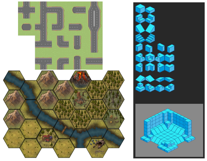 Mais il n'y a aucune limitation dans la forme des tiles, on peut utiliser des tiles en relief pour les utiliser en 3D isométrique ou même hexagonales!