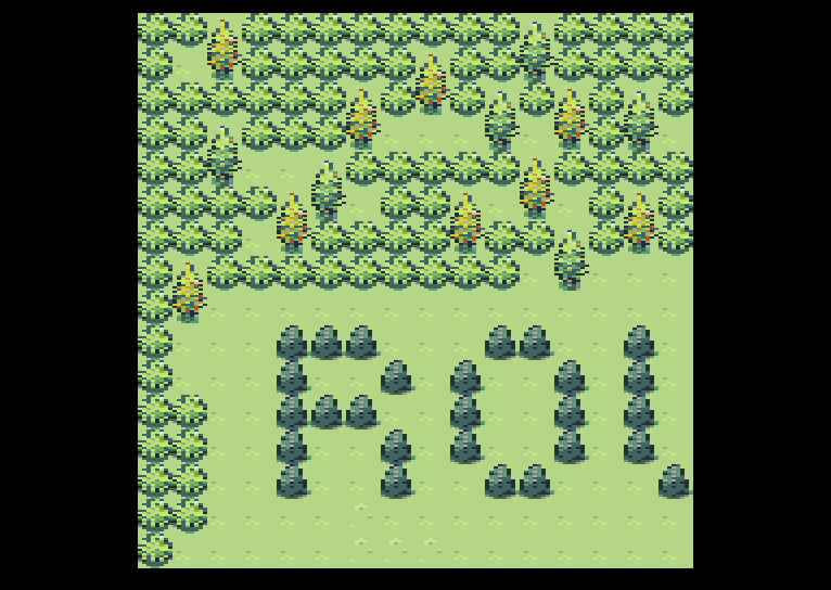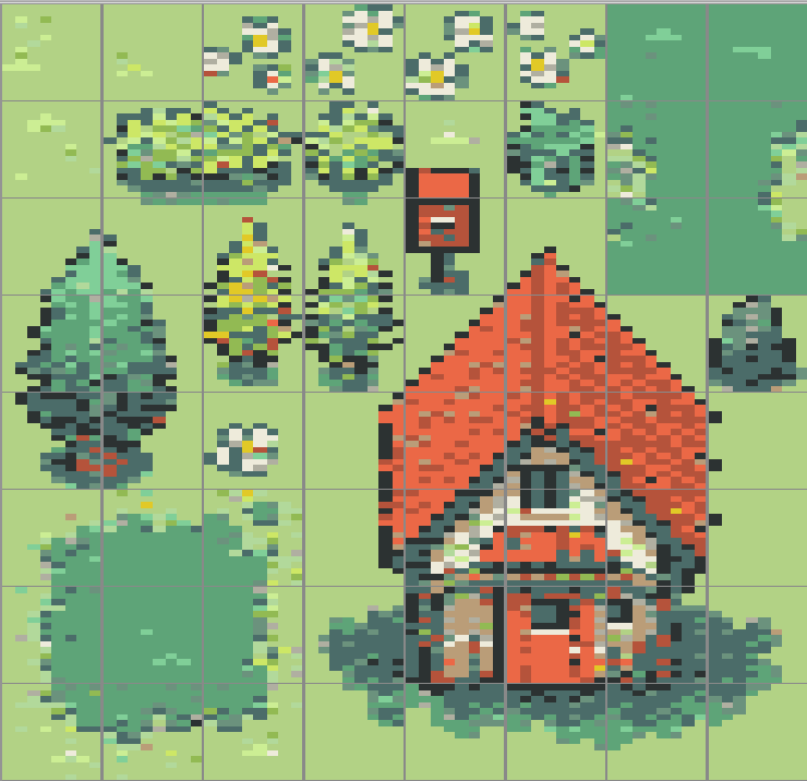 Pour illustrer notre programme du jour, j'ai converti quelques tuiles d'une planche en libre accès et créé une carte avec le logiciel [ Tiled ]. J'imagine