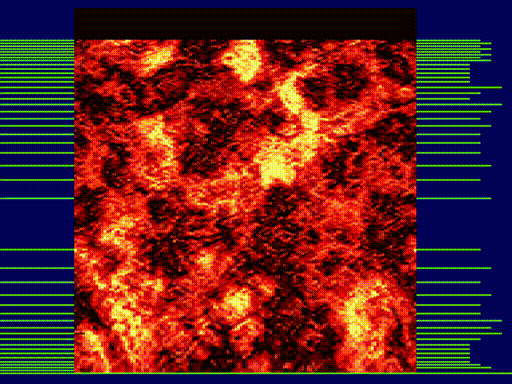 Il présente la propriété remarquable de reboucler absolument sans effort. Si on utilise une texture cyclique, on peut faire un scrolling infini en changeant la programmation du CRTC/ASIC sans changer le moindre octet à l'écran.