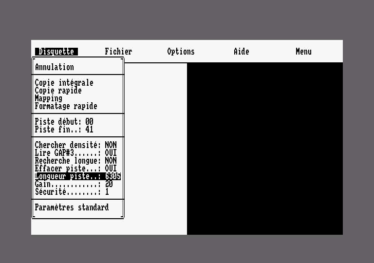 Dans l'épisode 2, je vous racontais que Discology essayait de rater la lecture d'un secteur pour trouver le début de la piste, afin de récupérer les secteurs lisibles dans le bon ordre. En effet, la fonction GetID renvoie le premier secteur trouvé et on ne peut jamais savoir où on va démarrer sur la piste.L'analyse de piste Il faut savoir que Discology joue avec le feu en utilisant cette méthode car le premier appel à l'instruction GetID ne déroge pas à la règle de lenteur des instructions de lecture/écriture du FDC : elle est lente, entre 1980 et 3900 nops soit le temps que le FDC survole jusqu'à 120 octets de données sur la piste. Heureusement pour Discology, l'entête d'une piste écrite par un FDC fait presque toujours 146 octets. La raison est assez simple, un FDC standard qui formate une piste écrira 80 octets de GAP, 16 octets de synchro+identification et enfin une nouvelle GAP avant l'entête du premier secteur. Ainsi il n'y avait plus qu'à dérouler des GetID et compter les nops en fonction de la longueur de piste configurée pour lire tous les secteurs dans l'ordre. Sur la capture ci dessous le réglage maximum de longueur de piste. Quand la fiction devient réalité Si les premières protections ont été créées sur CPC, les meilleurs système anti-copie viennent de créations industrielles sur des machines dédiées qui n'ont rien à voir avec le CPC. Les éditeurs envoyaient leur master qui était injecté dans la machine traceuse mais l'opérateur pouvait modifier certains paramètres comme augmenter la taille de GAP d'un seul secteur de la piste, modification anodine qui rendait la copie impossible.
