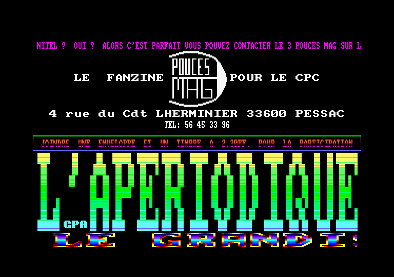 PAGES: 1 2 3 4 5 6 7 8 9 10 11 12 13 14 15 16 17 18 19 20 CPCrulez[Content Management System] v8.732-desktop Page créée en 816 millisecondes et consultée 560 foisL'Amstrad CPC est une machine 8 bits à base d'un Z80 à 4MHz. Le premier de la gamme fut le CPC 464 en 1984, équipé d'un lecteur de cassettes intégré il se plaçait en concurrent du Commodore C64 beaucoup plus compliqué à utiliser et plus cher. Ce fut un réel succès et sorti cette même années le CPC 664 équipé d'un lecteur de disquettes trois pouces intégré. Sa vie fut de courte durée puisqu'en 1985 il fut remplacé par le CPC 6128 qui était plus compact, plus soigné et surtout qui avait 128Ko de RAM au lieu de 64Ko. |