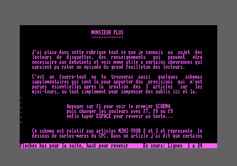 CPCrulez[Content Management System] v8.732-desktop/c Page créée en 254 millisecondes et consultée 1315 foisL'Amstrad CPC est une machine 8 bits à base d'un Z80 à 4MHz. Le premier de la gamme fut le CPC 464 en 1984, équipé d'un lecteur de cassettes intégré il se plaçait en concurrent du Commodore C64 beaucoup plus compliqué à utiliser et plus cher. Ce fut un réel succès et sorti cette même années le CPC 664 équipé d'un lecteur de disquettes trois pouces intégré. Sa vie fut de courte durée puisqu'en 1985 il fut remplacé par le CPC 6128 qui était plus compact, plus soigné et surtout qui avait 128Ko de RAM au lieu de 64Ko. |