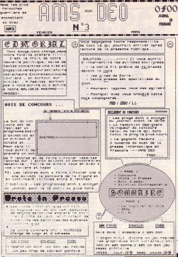 AMSDEO est né en mai 1988 sous le nom d'AMSDEUS, le projet a été aussitôt abandonné faute de volontaires pour pouvoir remplir la double page. Début novembre, un journal très connu des amstradiens tombe entre les mains de Jérôme qui me propose de l'accompagner dans son projet de fanzine. Je saute sur l'occasion. Laurent me suit, séduit lui aussi par l'idée. L'équipe journalistique au complet, les anciens locaux d'"Amsdeus" sont remis à neuf, les machines dégrippées. Seul un obstacle de taille s'impose devant nous : le boulot. Qu'importe si un numéro ne peut sortir tous les mois, il sortira tous les mois et demi (qu'on ne dise pas que les terminales E ne bossent pas !!!). Le premier numéro sort fin novembre, les moyens : AMSWORD traitement de texte + OCP Art Studio. Janvier, l'armée sort ses réserves, achète OXFORD PAO et fonce. C'est parti et bien parti. Deux DMP 2000/2160 fonctionnent 24h sur 24h à imprimer le déjà trop populaire fanzine. Quelques bons copains se précipitent et offrent leurs services. Dès le troisième mois, nous sommes débordés de courrier (4 lettres), le Minitel éclate (3 messages) mais nous ne désespérons pas. il y a un début à tout. Juste une petite chose que les gens oublient souvent, c'est que même si le fanzine est gratuit, la poste ne l'est pas elle. AMSTAR&CPC n°33 | ★ AMSTRAD CPC ★ DOWNLOAD ★ |