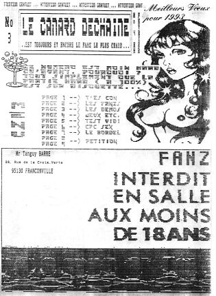 Avec un sous-titre comme je les aime : «Le fanz le plus chaud de la micro». Evidemment, cela ne pouvais que me plaire. C'est vrai, il y a des dessins un peu «hot» mais cela reste dans les limites de la (ma ?) décence. Ils sont d'ailleurs extraites pour la plupart d'un slide-show réalisé (je pense) par Patrick Dettori. Deux petits reproches pour ce numéro : les fontes disparates et la qualité des photocopies ne facilitent pas la lecture. Et, deuxième grief, pourquoi n'ai-je pas reçu les disquettes X mentionnées dans le fanzine ?Tanguy Barre 28, rue de *** 95130 Franconville