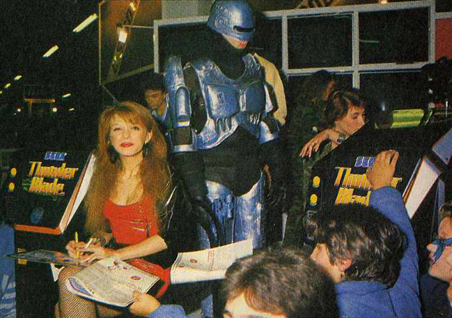 LORICIELS Profitant de la coïncidence de dates entre la sortie de 944 Turbo Cup et l'Amstrad Expo, Laurent Weill, P-DG de Loriciels, a convoqué la presse pour tenir une conférence sur son stand. Au cours de celle-ci, il a déclaré que plus de 50 % des 30 000 exemplaires mis en place chez les distributeurs étaient destinés aux Amstrad, le pourcentage restant se répartissant sur ST, Amiga, Thompson et PC. Toujours concernant Turbo Cup, qui décidément est le produit phare de cette fin d'année pour Loriciels (n'a-t-il pas été nominé pour le Tilt d'or de la meilleure simulation sportive, qu'il a remporté avant même que le jeu soit disponible chez les revendeurs ?), Laurent Weill a déclaré que, dès janvier 89, vous retrouverez Turbo Cup en machine d'arcade, dans toutes les bonnes salles de jeux. Fin de la conférence et annonce de la présence de René Metge sur le stand Loriciels le dimanche 6, pour des dédicaces et des défis sur Turbo Cup. En conclusion, un joli stand, de bonnes animations, une action marketing de poids. Si, après ça, Turbo Cup ne se vend pas, c'est à désespérer de tout ET C'EST REPARTI Nouvelle série de dédicaces pour Miss X. Cette fois, elle a lieu sur le stand Us Gold, et là c'est la panique. L'estrade est prise d'assaut, et même Robocop se demande comment il va pouvoir s'en sortir. Tout finit bien et nous en profitons pour visiter les stands de bon nombre d'éditeurs anglais représentés par la société SFMI. Impressionnants, les stands d'Océan et d'Us Gold, avec leurs machines d'arcade, des dizaines de jeux sur CPC, leurs concours permanents et le simulateur de sensation Us Gold ! Imagine, Grem-lin et Hewson sont eux aussi représentés, sans oublier Epyx, Go, Palace Software, chez qui Barbarian n'est toujours pas sorti sur CPC, et Incentive, pour ne citer que les plus connus. Des méga-stands extraludiques, avec pas mal de nouveautés que nous avons testées dans les pages qui suivent...