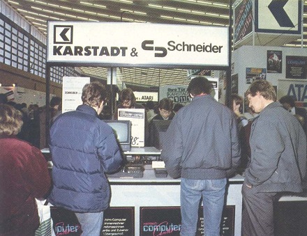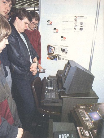 Am Stand des Horten Computer-Centers fanden wir dann so etwas wie eine Sensation. Dort wurde von der Fa. Vortex ein 5"¼ -Diskettenlaufwerk für den Schneider CPC angeboten, wahlweise als Einzeloder Doppellaufwerk. Diese 5¼"-Slimline-Laufwerke haben eine formatierte Speicherkapazität von 1.4 Megabyte. Die Laufwerke können direkt an den CPC angeschlossen werden, ein völlig neues Diskettenbetriebssystem (voll AMSDOS-kompati-bel) macht dies möglich. Über ein entsprechendes Adapterkabel kann das 3"-Laufwerk von Schneider sogar als drittes Laufwerk zugeschaltet werden, das alles ohne Hard- bzw. Softwareanpassungen. Die mitgelieferte CP/M-Software (Version 2.2) erhöht den Anwendungsbereich des CPC 464 um ein Vielfaches, das IBM Format 34 kann ohne Mühe gefahren werden. Der Preis für ein Einzellaufwerk liegt bei etwa 1.200,- DM. das Doppellaufwerk ist mit rund 1.600,- DM sensationell günstig. Cumana, bekannter Hersteller von Peripheriegeräten in England, zeigte ebenfalls ein 5¼"- Diskettenlaufwerk für den Schneider-Computer. Allerdings kann diese Floppy nur als Zweitstation betrieben werden. Das Schneider 3"-Format ist als primäres Laufwerk weiterhin einzusetzen. Das 5¼"-Format hat den großen Vorteil, unter CP/M erstellte Programme von Großrechnern wie IBM, Apple etc. auch auf dem CPC 464 lauffähig zu bekommen. An den Ständen der Computer-Abteilungen von Karstadt und Kaufhof war der Schneider-Computer ebenfalls stark vertreten. Hier stapelten sich zu Beginn der Ausstellung noch die CPC's und die 3"-Floppies; bereits nach kurzer Zeit war der Löwenanteil verkauft. Auffallend war auch das inzwischen reichhaltige Softwareangebot für den Schneider CPC, wir entdeckten viele interessante und neue Programme. In den nächsten Ausgaben von CPC International werden wir Ihnen regelmäßig die schönsten davon vorstellen. Die Herstellerfirma des CPC 464, Schneider Türkheim, war ebenfalls mit einem Stand in Dortmund angetreten. Allerdings war dieser so unscheinbar klein, daß er im Gegensatz zu manch anderen recht verlcren dastand. Lediglich einige Informationen über den CPC und über weitere Aktivitäten des Herstellers konnte der Besucher hier ergattern. Fazit: Die Computerschau und Hobbytronic '85 war eine vielseitige und überaus interessante Ausstellung. Am Schluß waren Besucher und Händler sichtlich zufrieden. Die Veranstalter lagen mit der Schwerpunktverteilung der Bereiche Computer und Elektronik goldrichtig. Bemerkenswert ist der Siegeszug des Schneider-Computers- das Jahr 1985 wird dem CPC 464 sicherlich neue Perspektiven eröffnen. Sicher ist, daß alteingesessene Computer wie Commodore, Atari oder Sinclair nicht vom Schneider CPC verdrängt werden, aber doch an Interesse seitens der Anwender eingebüßt haben. Bis zum Jahresende sollen weltweit über 600.000 CPC 464 verkauft werden. Die Dortmunder Computer-Schau '85 hat ihren Beitrag dazu geleistet.
