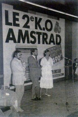 A l'occasion du SICOB et de l'arrivée sur le marché du PCW 8256, AMSTRAD FRANCE organisait un petit cocktail au cours duquel il nous a été possible de voir et toucher ce nouveau matériel. Notons que, par la même occasion, nous avons découvert le 6128 : il est beau, mais beau... ! Autour du matériel, il y avait du beau monde (c'est normal, puisque nous y étions pour représenter les lecteurs de CPC). Mme. Marion VANNIER et M. François QUENTIN d'AMSTRAD FRANCE accueillaient, pour l'occasion, M. Alan SUGAR, PDG d'AMSTRAD. Si quelques questions furent posées, on ne peut pas dire qu'il y eut "conférence de presse", et c'est tant mieux : l'ambiance était détendue. Un portable dans la gamme AMSTRAD ? Pas question, paraît-il ! Pourquoi avoir choisi les disquettes 3" ? A cause de leur prix, pardi ! Et le risque de voir tomber ce format dans l'oubli ? Bref, ce ne sont, semble-t-il, que propos alarmistes ! La pénurie de disquettes ? Faux, on a ce qu'il faut pour continuer à alimenter le marché !  Nous voilà rassurés, que diable ! Soulignant sa combativité sur un marché en pleine ébullition, symbole des KO mémoire sans cesse croissants et... du KO infligé à la concurrence, AMSTRAD nous remettait, en partant, un petit cadeau : une splendide paire de gants de boxe rouges. Croyez-nous, on ne va pas les "raccrocher" de sitôt ! Et si l'on parlait un peu du matériel ? PREMIER CONTACT AVEC UN 6128 Ciblant une clientèle plus professionnelle (mais convenant aussi aux amateurs !). l'esthétique de la machine a été revue. D'allure très sobre (les touches de couleur ont disparu), la machine est moins longue et moins épaisse que les 464 et 664. De ce fait, l'encombrement dépasse à peine celui du clavier détachable de certains ordinateurs. Le contact avec les touches du clavier n'est pas désagréable. La position de la touche RETURN (noyée entre le clavier et le pavé numérique) est un peu déroutante. La touche COPY ne se trouve plus au milieux des touches curseur qui, elles-mêmes, n'ont plus la même disposition. Les commandes Marche/Arrêt et volume sonore ont émigré à l'arrière de l'appareil. Sur le flanc gauche, on trouve l'entrée joystick, la sortie stéréo et la prise cassette. Côté mémoire, c'est bien sûr 64 k supplémentaires répartis en 4 fois 16 k. Cette gestion par "pages" de 16 k est utilisée par le soft comme une sorte de disque virtuel. Le "BANKMANAGER" est le "plus" de ce CPC 6128. Il assure la gestion des 64 k supplémentaires. Il est ainsi possible d'effectuer des sauvegardes et rappels d'écrans ultra-rapides, ou d'échanger le contenu de deux écrans. Les commandes associées passent par le RSX (|BANKOPEN, |BANKWRITE, |BANKREAD, |BANKFIND). Le CPM + offre bien des utilitaires intéressants, permettant notamment des reconfigurations faciles de périphériques (imprimante, écran, etc.). Il en va ainsi delà reconfiguration de caractères ou de la palette de couleurs. CPM + ouvre davantage la voie vers les gros logiciels professionnels tournant sous CP/M. Reste à les transférer en 3 pouces ! Quatre faces de disquettes sont livrées pour CPM et ses utilitaires. Une face supporte CPM 2.2 pour assurer une compatibilité avec les 464 et 664. Notons l'existence de DISCKIT 3 et DISCKIT 2 qui rendent beaucoup plus faciles les opérations de formatage et copies de disquettes et fichiers. La documentation remise avec l'appareil est volumineuse. Nous avions acheté le nôtre chez VISMO, et l'emballage contenait deux manuels : l'un en anglais, l'autre en français. Le CPC 6128 écrase, par son prix compétitif, les concurrents : ce n'est pas nouveau chez AMSTRAD ; le premier faux pas consiste, à notre avis, à avoir "coupé l'herbe sous le pied" au CPC 664. Demandez aux revendeurs, qui en ont en stock, ce qu'ils en pensent ! Quant aux utilisateurs, ils se retrouvent avec une machine qui n'est plus fabriquée moins de six mois après sa sortie tapageuse. NOUVEAU LE PCW 8256 La machine de traitement de textes à la portée des plus petites entreprises. A mi-chemin entre l'ordinateur (le PCW 8256 intègre un Basic rudimentaire), et le traitement de texte professionnel. La machine se présente sous l'aspect, agréable au regard, d'un écran monochrome et d'un clavier détachable. L'ensemble est de couleur crème, et le clavier n'est pas sans rappeler celui de certains ordinateurs "compatibles". Premier gros reproche : le clavier est QWERTY. La clientèle française (petits secrétariats, étudiants, etc.), s'y habituera-t-elle ? Même si les minuscules accentuées sont bien présentes, la disposition des touches est contestable.