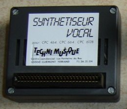 VOIX SYNTHETIQUELa synthèse vocale s'étend de plus en plus. Même les voitures s'y mettent. Ce système permet, pour un prix modique, de donner la parole à votre ordinateur. Les premiers synthétiseurs vocaux avaient un très net accent anglais ; celui que nous vous présentons aujourd'hui parle français avec un accent français. Il est fabriqué par TECHNI-MUSIQUE, à Clermont-Ferrand, et est donc, mise à part la nationalité des composants utilisés, de fabrication 100% française. Ce synthétiseur vocal est livré avec une notice en français et un logiciel d'application sur cassette ou disquette, suivant la version choisie. Le boîtier se,connecte facilement sur le bus d'extension de votre CPC (nous vous rappelons qu'une interface se connecte ou se déconnecte TOUJOURS lorsque l'ordinateur est éteint ; sinon existe un risque de destruction du matériel) sans faux contact. Une fois fixé, le boîtier ne bouge plus, c'est déjà un très bon point, malheureusement pas toujours recherché par les constructeurs.