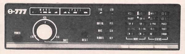 PRESENTATION DU THETA 777 Ce qui le différencie des autres appareils spécialisés dans le décodage, c'est la nécessité de le connecter à un terminal ou à un microordinateur pour pouvoir exploiter ses possibilités. En effet, le 777 reçoit les signaux issus du récepteur, les décode, et les expédie vers le terminal, en ASCII (ou en Baudot), par une liaison série de type RS 232. Il se présente donc comme une interface évoluée, capable de transformer tout ordinateur muni d'une liaison RS 232 en terminal de communication. Les possesseurs de THETA 7000 ou 9000 pourront trafiquer en AMTOR en ajoutant à leur équipement un 777. PRINCIPALES CARACTERISTIQUES Le 777 est capable de communiquer en Baudot, Ascii, Amtor (ARQ, FEC, ou mode Listener) et CW. Dans ce dernier mode, il pourra également servir de professeur de télégraphie capable de vous entraîner avec d'inlassables dictées. Le confort d'utilisation a été poussé au maximum. Le 777 est capable, en RTTY, de juger par lui-même du type de modulation, de la vitesse et du sens des signaux reçus. Il a également été prévu un mode de communication "codé" par inversion de bits (en Baudot). Les radioamateurs ne devront pas l'utiliser, sous peine de rappel au règlement. Les possibilités de SELCAL (appel sélectif) n'ont pas été oubliées. La machine ne recevra alors que les messages précédés du bon code. En AMTOR, le contrôle intégral de la situation, par l'intermédiaire du 777, réduira au strict minimum l'écriture du logiciel de dialogue restant à la charge de l'utilisateur. Dans ce mode, rien n'a été oublié, pas même l'indispensable réglage du délai de commutation E/R de la station (en fonction de la distance séparant les participants à la liaison). La télécommande E/R de la station est manuelle ou automatique, sous le contrôle de l'ordinateur (terminal). CARACTERISTIQUES TECHNIQUES L'interface Comme nous l'avons souligné, le 777 dialogue avec le terminal par une liaison de type RS 232. L'ordinateur qui servira de terminal devra donc en être doté. Le 777 est prévu pour travailler en RS 232 "standard" ou en mode "TTL". Un simple strap est à modifier, à l'intérieur de l'appareil. De même, la vitesse de dialogue avec le terminal est modifiable au moyen de switches internes. Le dialogue se fera en Half-Duplex ou Full-Duplex. La vitesse peut varier entre 100 et 2400 bauds. Elles est préréglée à 300 bds. Vitesse de trafic En CW, on peut trafiquer entre 5 et 100 mots par minute. Un asservissement automatique sur la vitesse est prévu. En Baudot et Ascii, la vitesse peut être choisie entre 12 et 200 bds ou 12 et 600 bds (en TTL). ATTENTION : le logiciel d'exploitation du micro-ordinateur émulant le terminal doit pouvoir "suivre". On rencontrera vite des limitations avec certains ordinateurs (tels les AMSTRAD). Buffer mémoire interne A l'émission, comme à la réception, un buffer est disponible. 512 caractères en sortie, 768 caractères en entrée. Même les virtuoses du clavier n'ont pas à s'inquiéter. Mémoires messages Les messages à émettre peuvent être mémorisés, facilitant grandement le trafic avec les procédures de routine. L'organisation des mémoires est ainsi conçue : 4x64 caractères, Ces messages seront pré-chargés en mémoire du THETA 777 à partir du terminal. Ils seront ensuite émis à partir d'une action sur les touches du clavier. Liaisons avec la station Le couplage en réception se fera par la prise haut-parleur ou encore, par un niveau TTL. A l'émission, l'AFSK est incorporé : 830 hertz en CW, 1275 Hz et 2125 Hz pour le MARK en RTTY, avec des shifts de 170, 425 et 850 Hz. Sa stabilité est rigoureuse : il est piloté par quartz. Des sorties FSK (RTTY) et KEY (CW), PTT et REMOTE complètent la panoplie des signaux disponibles. Un oscilloscope peut être connecté sur le THETA 777 pour l'analyse des signaux (méthode de la croix). Néanmoins, le calage en réception se fera aussi au moyen de rampes de diodes électroluminescentes. Diverses caractéristiques annexes L'alimentation du THETA se fait en 12 V. L'émission des codes CR (retour chariot) et LF (saut de ligne) est automatique, contrôlée par le 777, ou manuelle, à partir du terminal. L'insertion des codes "modes lettres", pendant les pauses, est prévue (auto-idle). Les messages RY et QBF (The quick brown fox... ) sont incorporés. Le décodage peut avoir lieu sur le seul Mark ou Space. En CW, le rapport point/trait peut être ajusté. L'entraînement à la CW n'a pas été oublié : un manipulateur est alors connecté au 777 qui tentera (!) de décoder vos propres signaux. Des groupes de 5 caractères aléatoires pourront entraîner l'opérateur. DESCRIPTION DU THETA 777 L'électronique du 777 est sagement rangée dans un boîtier gris de dimensions 250x230x65 mm. La réalisation du circuit imprimé et l'implantation des composants sont excellentes. Une armée de transistors et de circuits intégrés viennent en aide au microprocesseur. Le haut-parleur interne est un peu petit : heureusement, une prise annexe est prévue pour un HP extérieur. Face-avant On ne trouvera que trois commandes sur la face-avant du 777. Il est vrai que tout est commandé à partir du terminal... — poussoir de mise sous tension, Par contre, l'état de fonctionnement du 777 est indiqué par une kyrielle de diodes électroluminescentes. — Rampes de diodes pour le calage Mark et Space, Face-arrière Sur la face-arrière du 777 sont disposées toutes les prises destinées à établir les différentes connexions avec la station et le terminal. La prise RS 232 est du type DIN 8 broches à 270 degrés. On trouve également 8 prises CINCH : — entrées TTL ou AF (basse fréquence), Une fenêtre rectangulaire est ménagée dans la face-arrière pour permettre la connexion, à l'intérieur, des entrées X et Y d'un oscilloscope. Nous avons donc fait connaissance avec le THETA 777. Dans un prochain article, nous verrons commen