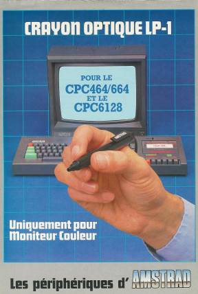 Le LP-1 est plus qu'un crayon optique: c'est un ensemble, crayon optique et logiciel graphique vous permettant d'exploiter au mieux les possibilités graphiques de vos CPC. Le crayon lui-même se branche dans la prise du joystick du micro. Le logiciel se charge comme beaucoup d'autres, en appuyant sur CTRL puis ENTER et ensuite sur PLAY de votre magnéto. (Il est toutefois à noter que ce logiciel ne marchera pas, si votre micro est muni d'une interfacé série ou d'un synthétiseur de paroles.) Le menu d'ouverture du logiciel vous offre quatre options et parmi elles le mode 0 (écran créateur en 16 couleurs) et le mode 1 (qui permet seulement l'utilisation de quatre couleurs). Ces deux modes vous donnent la possibilité de tracer des formes géométriques ou de dessiner librement, puis de remplir de trames de votre choix les zones sélectionnées, le tout choisi en pointant le crayon sur l'option voulue, ou dans le périmètre auparavant déterminé. Vous pourrez encore choisir des options TEXTE - qui permettent de travailler dans un texte, pour l'insertion d'autres mots par exemple -, loupe ou zoom, grossissant une partie définie de l'écran. Comme pour tous les autres crayons optiques, il est nécessaire de le manier avec précision, sous peine de voir réaliser des options qu'on ne voulait pas. AMSTRAD MAGAZINE n°5, p48