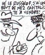 Vraiment, il suffit de peu de choses : un de nos lecteurs, professeur en Alsace, s'offre quinze jours de vacances à Moscou, pour étudier un échange scolaire avec une école soviétique, et il revient avec le scoop de l'année, si ce n'est du siècle ; les écoles soviétiques informatisées utilisent un matériel entièrement copié sur le CPC 464 d'Amstrad. Cet article, vous vous en douterez à la lecture, n'a pas été écrit par un journaliste ; nous avons cependant choisi de vous le livrer tel qu'il nous a été présenté, c'est-à-dire sous forme de récit vécu, afin de lui préserver son caractère « exceptionnel ». Ne nous en veuillez donc pas s'il ne fait pas toujours preuve de professionalisme. Avant toute chose, une petite précision ; l'ordinateur que j'ai vu ( et que je ne saurais nommer, pour cause de non connaissance du russe... ) n'est pas un vrai CPC. Que je sache, Amstrad International n'a pas, pour l'instant tout du moins, de marché en URSS. Il s'agit en fait d'un matériel de fabrication locale, dont les caractéristiques techniques sont (presque) en tous points identiques à celles du 464. Il m'est impossible à l'heure actuelle, de dire exactement quelle est l'origine de cette ressemblance. Coïncidence ? Espionnage industriel ? Quoi qu'il en soit, le fait est là, et les quelques rares tests que j'ai pus effectuer ne m'ont pas trompé. Tout d'abord, l'écran. Il aurait été difficile de ne pas tiquer, en voyant, l'ordinateur venant à peine de s'allumer, un écran bleu avec quelques lignes jaunes ressemblant à un message de copyright, suivies d'un « Ready » et d'un curseur. L'institutrice prononce alors quelques mots, et la classe entière (l'équivalent d'une classe de sixième chez nous tape, en basic standard, "LOAD". Un lecteur de cassettes externe, se met alors en marche, et l'ordinateur affiche « LOADING "PRG" Block 1 ».