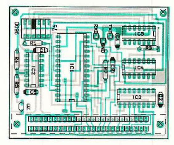 Il arrive parfois que le sort s'acharne cruellement sur un article et ce fut le cas pour AMSCOM n°486),Nous avions l'intention de vous donner les modifications pour fonctionner avec les nouveaux MINITELS 10, MATRA, etc, Mais nous na pensions pas avoir à corriger tant d'autres choses ! Page 73 : L'implantation présente IC1 et IC4 à L'envers (les points sur le CI pouvaient attirer l'attention). D'autre part, le tracé en bleu-vert est en fait celui de la face opposée. Les pistes visibles dans ce sens devaient être les pistes grises, Si l'on veut eue précis, le DIP switch 1200 Bd doit être noirci à la partie supérieure (enfoncé). Ne pas tenir compte des photographies sur les quelles cet inter est retourné et mal enfoncé. De plus, les positions 75 et 9600 sont inversées (75 côté IC1). Dans ce sens (face composant), le connecteur doit être vu en pointillés car il est placé de l'autre côté de la carte. Voici le nouveau dessin :