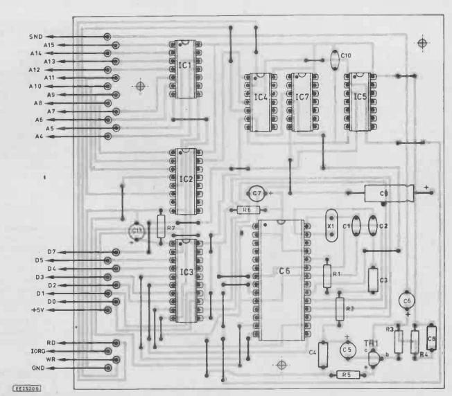 Leave this component in its anti-static packaging until, in all other respects, the unit is finished. Then fit this component onto the board, handling it as little as possible, avoiding touching the pins and fitting it into a holder already fitted to the board so that there is no need to make any direct soldered connections to this chip. With a fairly large integrated circuit of this type, IC6 can be a bit difficult to fit a into its socket. Usually the pins have to be carefully bent inwards slightly. Be careful not to buckle any of its pins when fitting IC6 into its socket. Although none of the other integrated circuits are static sensitive types, it is recommended that they should be fitted in holders. Fig. 4. Connection details for the 2x25 way edge connector. >> There should be no difficulties in fitting the other components onto the board provided the correct types of capacitor are used. In particular, the polyester types should have a lead spacing of 7.5 millimetres (0.3 inches). Be careful to fit the electrolytic capacitors with the correct polarity. A number of link wires are required, and these can be made from 22s.w.g. tinned copper wire, or the leads trimmed from the resistors and capacitors might be sufficient. CONNECTIONS The board is connected to the computer via a 25-way ribbon cable which is fitted with a 2 by 25-way 0.1 inch pitch edge connector at the computer end. At the other end it is either connected directly to the board, or via pins if preferred. Both ends of the cable should be prepared by separating all the wires, stripping a few millimetres of insulation from each one, and tinning them all with solder. The terminals of the edge connector (or the twenty five that are used anyway) should be tinned with solder, as should the pins on the board if this method of connection is adopted. In my experience the CPC computers are not tolerant of long connecting leads on their expansion bus. It is therefore recommended that the connecting cable should be no more than about 0.6 metres long. The edge connector connection details are given in Fig.4. The board has been designed so that the order of the connections on the board matches up well with that of those on the edge connector. Therc-is no need for any crossing over of wires, but you still need to be very careful to get each lead connected to the right terminal of the edge connector. The multi-coloured “rainbow” ribbon cable is better for this sort of thing, but grey ribbon cable is usable if you take extra care. If you are using a connector fitted with the appropriate polarising key, make quite sure that you have the connector the right way up before making the connections to it If the connector is not fitted with a polarising key, clearly mark the top and bottom edges such as to minimise the risk of fitting it to the expansion port up-side-down. Once this wiring has been completed, check it very thoroughly at least once before connecting the unit to the computer and trying it out. Projects of this type are often left as incased boards, as was the prototype. However, it should not be difficult to fit the unit into a small plastic case if preferred. This does have the advantages of being a bit neater, and keeping dust etc. off the circuit board.