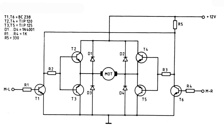 Der mechanische Aufbau soll jedem selbst überlassen werden. Am einfachsten ist die Verwendung eines Mechanikbaukastens (z.B. von Fischer-Technik). Aber der eigenen Fantasie sollen hier keine Grenzen gesetzt werden. Die Parallelschnittstelle Die Parallelschnittstelle wird mit der Z80A -Pio aufgebaut (Bild 2). Dabei begnügen wir uns mit einer einfachen Dekodierung. Laut Schneider-Handbuch muß für die Auswahl eines Schnittstellenbausteins A10 null sein. Zusätzlich wird noch A2 null gesetzt. (A3 und A4 stehen in ähnlicher Weise für weitere Bausteinauswahl zur Verfügung). Damit ist die Pio unter folgenden Adressen ansprechbar: F8F8 Port A - Daten Bei Einhaltung dieser Adressen sind keine Störungen zu befürchten, da der CPC intern die gleiche Methode zur Dekodierung verwendet, aber die Adressen A2, A3 und A4 nicht belegt. In der Schaltung nach Bild 2 ist die Anschlußbelegung des Port A angegeben. Wenn Sie das nachfolgende Programm verwenden wollen, sind diese Anschlüsse genau einzuhalten. Der Schaltverstärker für die Motorsteuerung Zum Schaltverstärker für die Gleichstrom-motore (Bild 3) ist keine große Erklärung notwendig. Die beiden Transistoren T1 und T6 entlasten die Ausgänge der Pio. Sind die beiden Eingänge M-L und M-R auf Null so steht der Motor. Wird einer der beiden Eingänge auf H Pegel gesetzt, so dreht der Motor in die entsprechende Richtung. Für unseren 2-Achs-Roboter ist diese Schaltung zweimal erforderlich.