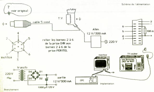 Voici comment réaliser un miracle avec très peu de composants : avoir la couleur en possédant un AMSTRAD monochrome.Naturellement, vous aurez compris qu'il ne s'agit pas de transformer le moniteur, mais plus simplement de réaliser un cordon qui raccordera la console au téléviseur couleur familial, pourvu que celui-ci soit doté d'une prise Péritel. Le coût de la réalisation est extrêmement bas, même en tenant compte de l'alimentation 12 volts dont nous donnons un schéma. Cette alimentation permet de déconnecter la partie réception HF du téléviseur. Elle est indispensable car, l'AMSTRAD fonctionnant sous 5 volts, ne permet pas de commander la commutation via le câble.