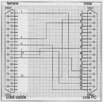 - un connecteur DB25 femelle à souder (du côté du port imprimante PC)